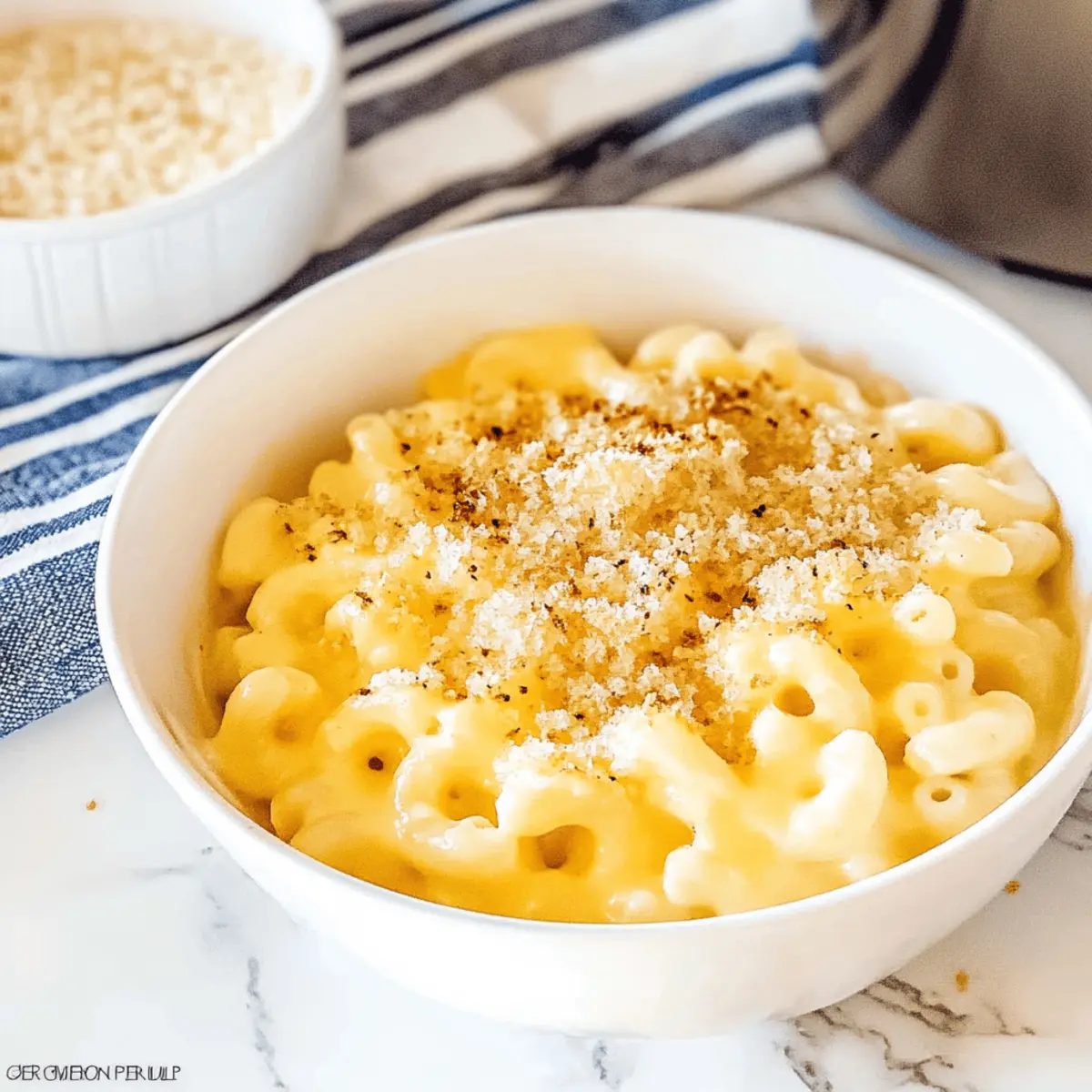 The aroma of melted cheese wafting through the house is enough to draw anyone in, and that’s just the beginning of the magic of my Super Creamy Baked Mac and Cheese. This dish is not only a warm hug on a chilly evening but also a flexible comfort food that pleases even the pickiest eaters. With simple ingredients you probably already have at home, it’s quick to whip up and can easily be made ahead or frozen for a later treat. Plus, it adapts beautifully for different diets—think creamy indulgence that can be dairy-free or gluten-free without sacrificing any flavor. Are you ready to transform your dinner table with this ultimate comfort food classic? Why is Baked Mac And Cheese a Must-Try? Comforting Warmth: This Super Creamy Baked Mac and Cheese is ideal for cozy nights in, bringing warmth that feels like a hug in a dish. Versatile Options: Easily adapt this recipe for various diets—whether dairy-free, gluten-free, or loaded with veggies, it fits any lifestyle! Quick and Simple: With straightforward steps and common pantry ingredients, you can prepare this delightful dish in no time, perfect for busy weeknights. Family-Friendly Delight: Kids and adults alike love the creamy cheesiness, making it a reliable crowd-pleaser for gatherings or family dinners. Make Ahead Brilliance: Prepare in advance and have delicious leftovers waiting for you; it’s an easy meal to freeze for those busy days. Pair this with a fresh salad for a balanced meal, or check out my Peach Baked Oatmeal for a sweet side! Baked Mac And Cheese Ingredients Dive into the world of cheesy goodness with these essential ingredients! For the Pasta Elbow macaroni – The classic base for this dish, providing the perfect texture. Substitution: Use gluten-free pasta for a gluten-free option. For the Cheese Sauce Medium-sharp cheddar cheese – Enhances flavor with a delightful sharpness. Substitution: Mild cheddar can offer a lighter taste. Raclette cheese (or Gruyère) – Delivers a rich and creamy melting quality. Substitution: Gruyère lends a slightly nutty flavor or mix in mozzarella for additional creaminess. Unsalted butter – The key to creating that luxurious roux for the cheese sauce. Note: Use dairy-free butter for a dairy-free twist. All-purpose flour – Thicken the cheese sauce for optimal creaminess. Substitution: A gluten-free flour blend works as well. Whole milk – Forms the creamy foundation of our sauce. Substitution: Almond milk, soy milk, or oat milk can be used for dairy-free options. Heavy whipping cream – Adds an extra layer of richness. Substitution: Boxed dairy-free heavy cream alternatives do a fine job. Dry mustard – Infuses a depth of flavor that lifts the dish. Optional: Substitute with Dijon mustard for a zesty kick. Salt, black pepper, paprika – Essential seasonings to elevate the dish’s overall flavor. Adjust to your preference. For the Topping Panko breadcrumbs – Adds a delightful crunch on top of your baked mac and cheese. Substitution: Regular breadcrumbs can work too; season with herbs for added flavor. With these ingredients in hand, you’re just moments away from creating a Baked Mac And Cheese that will warm hearts and satisfy cravings! Step‑by‑Step Instructions for Baked Mac And Cheese Step 1: Preheat Your Oven Start by preheating your oven to 325°F (165°C). While it warms up, grab a 9×13-inch baking dish and lightly grease it with butter or cooking spray. This ensures your Baked Mac And Cheese will come out smoothly after baking, ready to delight your family and friends with its creamy goodness. Step 2: Cook the Pasta Bring a large pot of salted water to a boil. Add the elbow macaroni and cook for just 1-2 minutes less than the package directions recommend, as it will continue to cook in the oven. Drain the macaroni and set it aside. This slight undercooking helps maintain the pasta’s structure and allows it to absorb the luscious cheese sauce beautifully. Step 3: Prepare the Cheese Mixture In a medium bowl, combine the shredded medium-sharp cheddar cheese and Raclette cheese. Toss them together and set aside. This delightful combination will create a rich, cheesy experience in your Baked Mac And Cheese, ensuring each bite is filled with melty goodness that will have everyone coming back for more. Step 4: Make the Roux Return the empty pot to the stove over medium heat, and add the unsalted butter, letting it melt completely. Once melted, whisk in the all-purpose flour and cook for 1-2 minutes until it turns a light golden color. This roux is essential for thickening your cheese sauce, which will coat your macaroni perfectly. Step 5: Create the Cheese Sauce Slowly add in the whole milk and heavy whipping cream while whisking continuously to avoid lumps. Continue stirring for about 3-5 minutes until the sauce thickens and begins to bubble. Then, stir in the dry mustard, salt, black pepper, and paprika to enhance the flavors. This creamy sauce will be the soul of your Baked Mac And Cheese. Step 6: Combine Cheese and Macaroni Remove the pot from heat and gradually fold in half of the cheese mixture until melted and well combined. Next, add the drained macaroni and gently stir until every piece is coated in the creamy cheese sauce. This step is where your dish starts to come to life, filling your kitchen with its irresistible aroma. Step 7: Layer the Dish Spoon half of the cheesy mac mixture into the prepared baking dish, then sprinkle half of the remaining cheese on top. Repeat with the remaining macaroni and top it off with the rest of the cheese. This layering technique creates a beautifully cheesy top layer that will become deliciously bubbly during baking. Step 8: Bake to Perfection Place the assembled dish in the preheated oven and bake for 13-15 minutes, or until it’s bubbling and deliciously golden. For an added touch of crispiness, broil for an additional 2-3 minutes, watching closely to ensure it doesn’t burn. Your Baked Mac And Cheese should now
