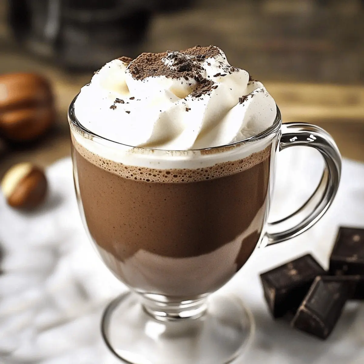 Enjoy the rich and comforting flavors of Chestnut Hot Chocolate with Boozy Whipped Cream, perfect for cozy nights.