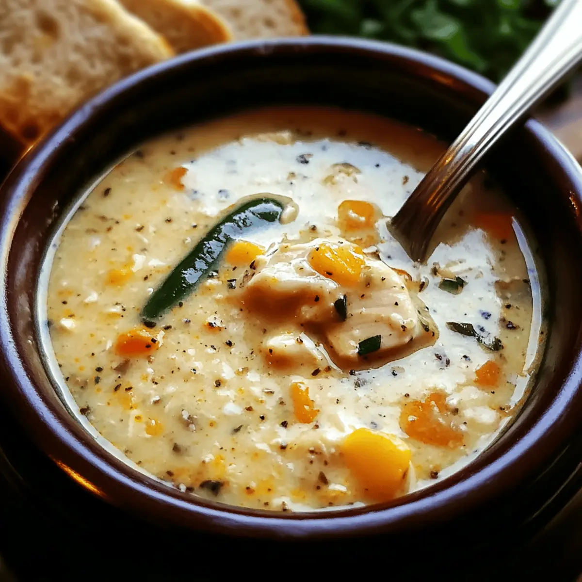 As I stood over the stove, a swirl of smoky aromas filled my kitchen, instantly transporting me to sun-soaked days in the heart of Mexico. This Chile Relleno Soup is everything you’d hope for from a comforting dish: creamy, savory, and so easy to whip up in one pot! With its rich blend of roasted poblanos, tender bits of chicken, and a luscious cheese blend, it transforms a classic into a cozy bowl of magic—perfect for those chilly evenings. Plus, it’s customizable to your liking, whether you crave an extra kick of spice or prefer a vegetarian twist. Ready to warm up with this delightful soup? Let’s dive into the recipe that will make your kitchen the coziest place to be! What makes this soup so comforting? Comforting and hearty: This Chile Relleno Soup is the ultimate comfort food, providing warmth and satisfaction with every spoonful. Customizable to your taste: Whether you enjoy a mild flavor or crave some heat, you can easily adjust the spices. One-pot wonder: With minimal cleanup, you can enjoy a delicious homemade meal without the hassle of multiple pots and pans. Family-friendly: With its creamy texture and familiar flavors, this soup appeals to both kids and adults—perfect for those cozy family nights! Pair it with warm tortillas or a dollop of sour cream for an extra treat, and if you’re in the mood for something lighter, check out my delicious Tomato Aguachile Zesty recipe. Enjoy your culinary adventure! Chile Relleno Soup Ingredients • Get ready to gather everything you’ll need for this comforting dish! For the Soup Poblano Peppers – These are the main flavor contributors; roasting enhances their smokiness, but canned green chiles can work in a pinch. Butter – Adds richness when sautéing aromatics; feel free to use olive oil for a lighter version. Onion – An aromatic base that brings sweetness; yellow onions are ideal, but shallots can provide a milder taste. Garlic – Depth and savory notes come from this essential ingredient; use fresh for the best flavor, or garlic powder if necessary. Ground Cumin – This warm spice complements the poblanos perfectly; while there’s no direct substitute, smoked paprika can be an intriguing alternative. Chicken Bone Broth – Rich in flavor and perfect for the base; vegetable broth makes a great substitute for a vegetarian version. Salt and Pepper – Essential for seasoning; always adjust based on your broth’s saltiness. Chicken Thighs/Breasts – Diced for even cooking and great protein; rotisserie chicken can save valuable time. Cream Cheese – Adds creaminess for that velvety texture; Greek yogurt is a lighter alternative, but may change the final consistency. Shredded Cheddar Cheese – This is the main cheese contributing flavor and creaminess; feel free to mix it up with Monterey Jack or Pepper Jack variants. For the Topping Sliced Cheddar or Pepper Jack Cheese – Top your soup with these cheeses for a bubbly layer—don’t skip this step! With these ingredients, you’re on your way to creating a truly heartwarming Chile Relleno Soup that your family will adore! Step‑by‑Step Instructions for Chile Relleno Soup Step 1: Roast the Poblanos Begin by roasting the poblano peppers to infuse your Chile Relleno Soup with rich, smoky flavors. Place the peppers directly over a gas flame or under the broiler for about 10-15 minutes, turning occasionally until they are blistered and charred. You’ll know they’re ready when the skin is blackened and bubbly. Step 2: Steam and Peel After roasting, transfer the poblano peppers to a bowl and cover it tightly with plastic wrap for 10 minutes. This steaming process will help the skins loosen. Once cooled, peel off the blackened skin, remove the seeds, and chop the peppers into bite-sized pieces, ready to join your soup. Step 3: Sauté Aromatics In a large pot, melt 2 tablespoons of butter over medium heat. Add one diced onion and sauté for about 5 minutes until it turns translucent and fragrant. Then, stir in 3 minced garlic cloves and 1 teaspoon ground cumin, cooking for an additional minute before adding in the chopped roasted poblanos for a burst of flavor. Step 4: Build the Broth Pour in 4 cups of chicken bone broth into the pot, and season well with salt and pepper according to your taste. Bring the mixture to a boil over high heat, then reduce the heat and let it simmer uncovered for about 10 minutes to allow the flavors to meld beautifully. Step 5: Cook the Chicken Add 1 pound of diced chicken thighs or breasts into the simmering broth. Continue to cook for about 10-12 minutes until the chicken is fully cooked and tender, ensuring that it reaches an internal temperature of 165°F. Stir occasionally so that the chicken cooks evenly throughout the soup. Step 6: Make the Cheese Blend While your chicken is cooking, prepare a creamy cheese blend. In a blender, combine 8 ounces of cream cheese, 1 cup of shredded cheddar cheese, and about a cup of the hot broth from the pot. Blend until smooth and creamy, creating a delightful addition to your Chile Relleno Soup. Step 7: Finish the Soup Stir the cheese mixture back into the pot of simmering soup, incorporating it thoroughly until everything is well-combined and creamy. Allow the soup to heat for another 5 minutes on low heat, bringing everything together while adjusting seasoning if needed. Step 8: Broil and Serve Ladle the hot soup into oven-safe bowls and top each with slices of cheddar or pepper jack cheese. Place the bowls under the broiler for about 2-4 minutes, watching closely until the cheese is bubbly and golden brown. Serve immediately, and enjoy the delicious, comforting goodness of your Chile Relleno Soup! How to Store and Freeze Chile Relleno Soup Fridge: Store your Chile Relleno Soup in an airtight container for up to 3 days. This allows the flavors to meld beautifully while keeping it fresh for your next cozy meal. Freezer: For longer storage, freeze the soup without the cheese topping. In a freezer