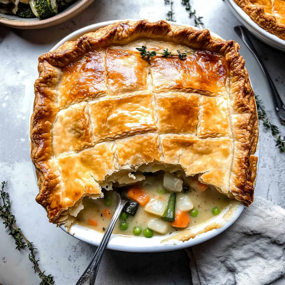 As I stood in my kitchen, the aroma of sautéed mushrooms and garlic filled the air, instantly transporting me to my favorite family gathering. The star of the evening? My Creamy Vegetable Pot Pie, a dish that seamlessly blends warmth and nourishment, perfect for cozy weeknights. This vegan-friendly comfort food not only comes together in a snap but also delivers on flavor and heartiness, making it a hit with everyone from toddlers to seasoned foodies. Packed with wholesome ingredients like white beans and a medley of vibrant vegetables, it’s a light yet satisfying meal that leaves you wanting more. So, are you ready to bring a slice of culinary bliss into your home? Let’s dive into this recipe that will have your family asking for seconds! Why is this pot pie a must-try? Comforting, hearty goodness: This Creamy Vegetable Pot Pie wraps fresh and frozen veggies in a luscious filling that delights your taste buds. Quick and easy: Perfect for busy weeknights, it comes together rapidly, making dinner a breeze. Versatile options: Feel free to adapt it to your taste, whether by adding seasonal vegetables or trying variations like Purple Sweet Potato. Crowd-pleaser: It’s a dish that both children and adults will adore, similar to other favorites like Peanut Butter Pie. Wholesome nutrition: Packed with protein-rich beans and vegetables, it’s not just comforting, but nourishing too! Creamy Vegetable Pot Pie Ingredients For the Filling • Extra-virgin olive oil – Adds richness and is perfect for sautéing; can substitute with avocado oil. • Cremini mushrooms (8 oz.) – Provides umami flavor and texture; substitute shiitake or button mushrooms if needed. • Yellow onion (1 cup, finely chopped) – Adds sweetness and depth; use shallots for a milder flavor. • Garlic (3 cloves, minced) – Enhances aroma and taste; substitute garlic powder in a pinch (1 tsp). • Fresh thyme (2 tsp, plus more for garnish) – Imparts herbal freshness; dried thyme can be used (1 tsp). • Poultry seasoning (1 tsp) – Adds complex flavor notes; omit for a simpler taste or use Italian seasoning instead. • Kosher salt (¾ tsp) and black pepper (½ tsp) – For seasoning; adjust according to taste preferences. • All-purpose flour (¼ cup) – Thickens the filling; for gluten-free, use cornstarch or a gluten-free flour blend. • Whole milk (1 ½ cups) or cashew milk – Provides creaminess; substitute with any plant-based milk for a vegan option. • Vegetable broth (1 cup) – Adds depth of flavor; consider low-sodium versions for a healthier choice. • Frozen mixed vegetables (1 bag, 16 oz.) – Convenient and varied textures; can substitute with fresh vegetables (approx. 4 cups). • Navy beans (1 can, 15 oz., rinsed and drained) – Contributes protein and creaminess; replace with chickpeas if desired. • Grated Parmesan cheese (3 tbsp) or nutritional yeast – Adds a cheesy flavor; nutritional yeast is a great vegan alternative. For the Crust • Prepared pie crust – A base for the pot pie; use store-bought or homemade, ensuring it’s vegan if substituting. • Egg (1, beaten with water for egg wash) – Provides a golden finish on the crust; omit for a vegan version or use a milk wash. Step‑by‑Step Instructions for Creamy Vegetable Pot Pie Step 1: Preheat the Oven Begin by preheating your oven to 425ºF (220ºC). This temperature is crucial for achieving that golden, flaky crust you’ll love. While your oven is heating, gather your ingredients and prepare your workspace, ensuring you have a large skillet or Dutch oven ready for the next steps. Step 2: Sauté the Vegetables In your large skillet or Dutch oven, heat 2 tablespoons of extra-virgin olive oil over medium-high heat. Once hot, add 8 ounces of cremini mushrooms and 1 cup of finely chopped yellow onion. Sauté these ingredients for about 7-8 minutes, until they soften and the onions become translucent, filling your kitchen with a delightful aroma. Step 3: Add Aromatics Next, toss in 3 minced garlic cloves, 2 teaspoons of fresh thyme, 1 teaspoon of poultry seasoning, and season with ¾ teaspoon of kosher salt and ½ teaspoon of black pepper. Stir the mixture and cook for an additional minute until fragrant, allowing the garlic to impart its rich aroma into your creamy vegetable pot pie filling. Step 4: Incorporate the Flour Sprinkle ¼ cup of all-purpose flour evenly over the sautéed vegetable mixture. Cook this for 2 minutes, stirring continuously to eliminate any raw flour taste. This step is essential for creating a thick and creamy filling that will beautifully envelop your vegetables. Step 5: Add Liquids Gradually whisk in 1½ cups of whole milk (or cashew milk for a vegan option) and 1 cup of vegetable broth. Continue to whisk until the mixture is smooth, then allow it to simmer for 3-5 minutes. You’ll notice it thickening up, creating a creamy, luscious base for your pot pie. Step 6: Mix in Veggies and Beans Stir in a 16-ounce bag of frozen mixed vegetables and a can of rinsed and drained navy beans, blending everything until well combined. At this point, remove the pot from the heat and invite the comforting aroma to envelop you as the filling comes together, ensuring it’s hearty and satisfying for your creamy vegetable pot pie. Step 7: Prepare the Baking Dish Grease an 8×8-inch baking dish to prevent sticking. Transfer the creamy vegetable filling into the dish, spreading it evenly. This will serve as the heart of your pie, rich with nutrients and flavor, creating a warm base for the flaky crust to come. Step 8: Roll Out the Crust Roll out your prepared pie crust on a floured surface, aiming for a circle large enough to cover the dish. Trim any excess dough, leaving enough to crimp the edges beautifully. This ensures a lovely presentation and keeps the filling snugly inside, enhancing the overall aesthetic of your creamy vegetable pot pie. Step 9: Add the Egg Wash Brush the top of the pie crust with your egg wash 