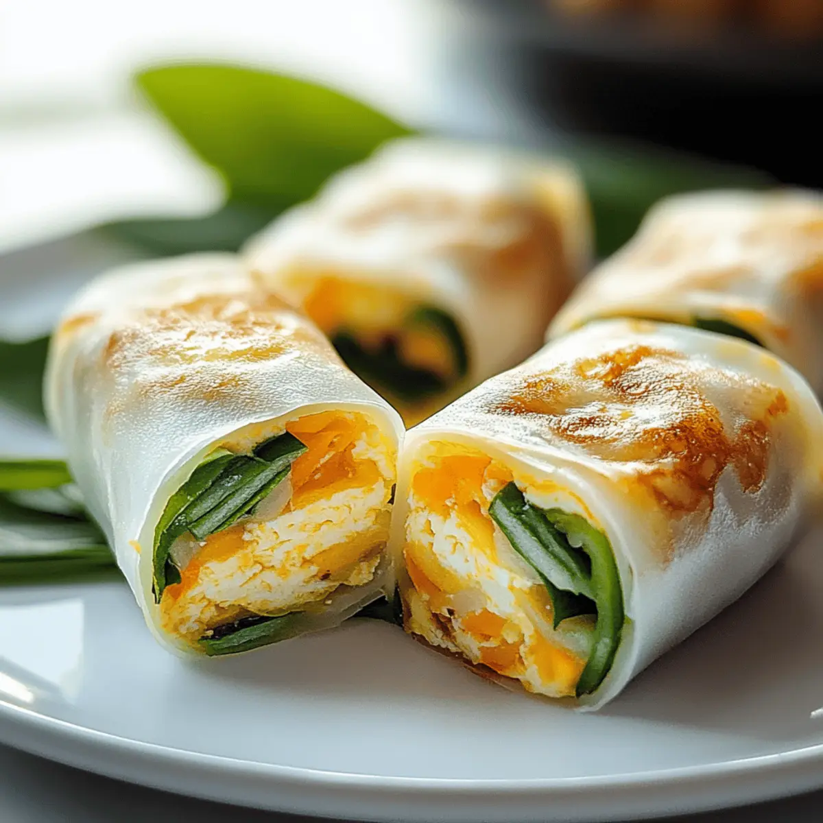 As I watched my friend whip up a batch of Crispy Rice Paper Egg Wraps, I couldn’t help but marvel at how a handful of simple ingredients can transform into a gourmet delight. With their tantalizing crunch and savory filling, these wraps are the kind of dish that both novice cooks and seasoned chefs can master with ease. Not only are they quick to prepare, perfect for those busy weeknights, but they also lend themselves to endless customization—whether you’re craving a hearty filling or a light, veggie-packed option, there’s a twist for everyone. Plus, they’re gluten-free, making them a fantastic choice for various dietary needs. Are you ready to dive into this delicious adventure and discover the magic of rice paper wraps? Why are these wraps so irresistible? Crispy Crunch: Each bite delivers an unforgettable crunch that perfectly complements the savory filling. Endless Customization: These wraps can be tailored to suit any palate—try them with a tofu scramble for a vegan twist! Healthy & Satisfying: With fresh veggies and eggs, these wraps are a nutritious choice packed with flavor and fun. Quick & Easy: Perfect for busy weeknights, these delicious wraps can be ready in no time! Crowd-Pleaser: Whether it’s a family dinner or a party appetizer, everyone will love their personalized wraps when paired with options like sweet chili sauce or hoisin sauce. Ready to switch things up? Check out my Teriyaki Chicken Rice Bowl for an equally delightful meal! Crispy Rice Paper Egg Wrap Ingredients • For the Wraps Rice paper wrappers – Look for thin, pliable sheets that give the best crunch once cooked. • For the Filling Eggs (chicken or duck) – The star ingredient that adds protein and richness; scramble for a lovely texture. Fresh vegetables (carrots, bell peppers, cucumbers) – They provide crunch and freshness; feel free to mix in zucchini or radish for variety. Low-sodium soy sauce – This seasoning adds depth to your filling; swap in tamari for a gluten-free option or skip for a non-soy version. Fresh herbs (cilantro, mint) – These elevate the flavor and aroma; try substituting with basil or green onions to switch things up. With these simple but vibrant ingredients, you can create delightful Crispy Rice Paper Egg Wraps that cater to your every craving! Step‑by‑Step Instructions for Crispy Rice Paper Egg Wraps Step 1: Prepare Filling Begin by whisking together eggs in a medium bowl, adding a pinch of salt and pepper for seasoning. If desired, incorporate chopped fresh vegetables such as bell peppers and carrots into the mixture for a colorful filling. Set the filling aside while you get ready to soak the rice paper wrappers, ensuring all ingredients are within reach. Step 2: Soak Rice Paper Fill a shallow dish with warm water, and carefully dip the rice paper wrappers in it for about 10-15 seconds, or until they become pliable yet not overly soft. Remove the wrapper and gently shake off any excess water. Lay it on a clean, dry surface for easy assembly of your Crispy Rice Paper Egg Wraps. Step 3: Assemble Wrap Place the soaked rice paper wrapper on your work surface. Spoon a generous amount of the egg mixture onto the bottom third of the wrapper, leaving some space at the edges. Add a few fresh herbs like cilantro or mint for an aromatic touch. Make sure the filling is evenly spread to ensure every bite is flavorful. Step 4: Roll Wrap Fold the sides of the rice paper wrapper over the filling, then begin rolling from the bottom up to enclose the filling tightly. As you roll, take care to keep the filling secure without tearing the delicate rice paper. Aim for a snug roll to hold everything together, resulting in a well-sealed wrap ready for cooking. Step 5: Cook Wraps Heat a tablespoon of cooking oil in a non-stick skillet over medium heat. Once the oil is shimmering, add the prepared wraps seam-side down and cook for about 3-4 minutes until they turn a beautiful golden brown. Flip the wraps and cook on the other side for an additional 3-4 minutes, achieving a perfectly crispy texture on both sides. Step 6: Serve Once the wraps are golden and crispy, transfer them to a plate lined with paper towels to absorb any excess oil. Serve warm, accompanied by your choice of dipping sauces like sweet chili or hoisin sauce. These Crispy Rice Paper Egg Wraps make for a delightful appetizer or a light meal that’s sure to impress! Crispy Rice Paper Egg Wraps Variations Feel free to get creative with your cooking and personalize these wraps to suit your mood and tastes! Vegan Substitute: Replace eggs with a tofu scramble or chickpea flour mixture for a protein-packed vegan option. The tofu brings a lovely texture, while the chickpea flour can add a nutty flavor. Gluten-Free Twist: Use tamari instead of traditional soy sauce to ensure gluten-free wraps. This small swap will still give you the savory depth of flavor. Seasonal Veggies: Mix it up with seasonal vegetables like roasted red peppers or asparagus for a delightful crunch. Fresh summer produce can truly elevate the taste! Spicy Kick: Add heat by including chopped jalapeños or a sprinkle of chili flakes in your egg mixture. Your taste buds will thank you for that extra zing! Herb Harmony: Experiment with different herbs like basil, parsley, or even dill for a unique flavor profile. Each herb brings its own freshness and can transform the dish. Stuffing Variations: For an even heartier wrap, consider adding cooked shrimp or shredded chicken along with your vegetables. It’s a fantastic way to add protein and flavor! Crunchy Layer: Add in a handful of crushed peanuts or cashews to your filling for an unexpected crunch and extra nuttiness. It’ll take the texture to a whole new level! Fruity Flair: Try incorporating finely chopped fruits like mango or pineapple into your wraps for a sweet twist that pairs beautifully with the savory elements. For even more delicious options, why not check out some of my favorite Chicken Le