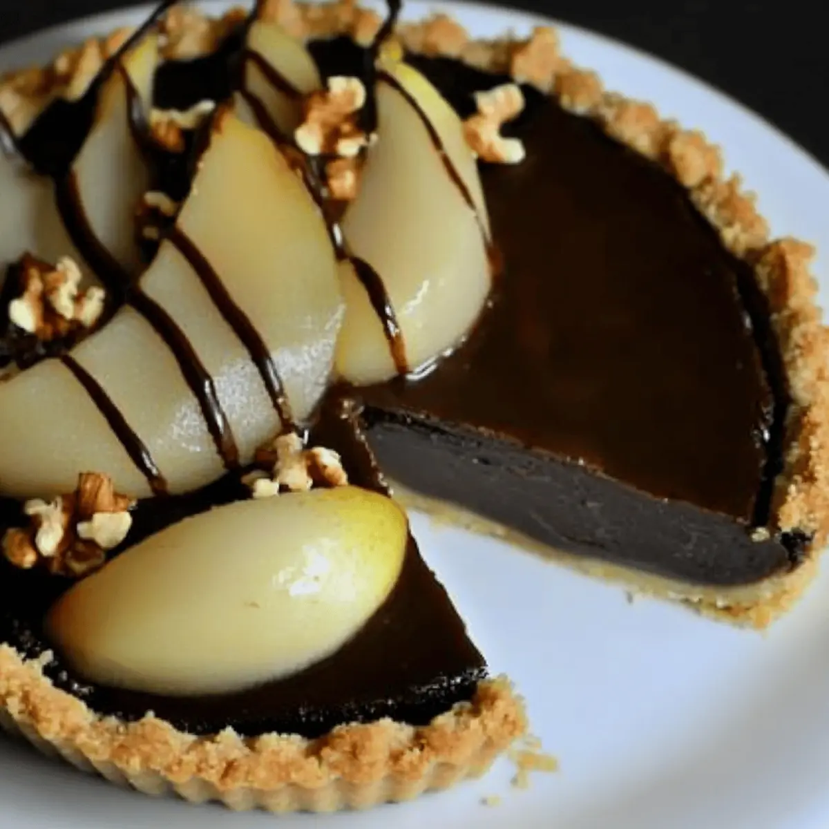As I carefully sliced into my freshly baked Dark Chocolate Pear & Walnut Tart, the warm, inviting aroma of toasted walnuts wafted through my kitchen, instantly transporting me to a cozy café on a sunlit afternoon. This elegant gluten-free dessert is the perfect way to elevate your home baking game. Picture velvety dark chocolate ganache surrounded by tender poached pears, all resting on a delightful walnut crust. It’s not just stunning to look at; this tart offers a quick prep time so you can impress guests without spending hours in the kitchen. Whether you’re celebrating a special occasion or simply treating yourself, this dessert will become a fast favorite. Are you ready to whip up something extraordinary that will have everyone asking for seconds? Why Is This Tart So Irresistible? Simplicity: The straightforward steps make this tart easy for bakers of any level, so you’ll spend less time in the kitchen and more time enjoying with loved ones. Decadent Flavor: Rich dark chocolate paired with tender poached pears creates an opulent taste that’s simply unforgettable, making it a go-to for dinner parties. Gourmet Presentation: Impress your guests with its stunning look—perfect for occasions like Valentine’s Day or celebrations. Versatile Ingredients: Swap in your favorite nuts or experiment with different fruits, making this dessert adaptable to your taste preferences. Make Ahead: Prepare this dessert in advance—just chill and serve for a delightful treat that’s always ready to go. For another delightful dessert idea, check out the Vegan Chocolate Tart, which is also easy to make and deliciously rich! Dark Chocolate Pear & Walnut Tart Ingredients For the Crust Walnut Halves – Provides a crunchy and nutty texture; toasting enhances their flavor, but pecans can be a nice substitute. All-Purpose Flour – Forms the structure of the crust; for a gluten-free option, use a gluten-free flour blend. Powdered Sugar – Sweetens the crust and gives a fine texture; you can use granulated sugar, but the texture might differ. Unsalted Butter – Adds richness and moisture; make sure it’s cold and cut into pieces for proper mixing. Kosher Salt – Balances the flavors in the crust. For the Poached Pears Bosc Pears – Offers a sweet, tender texture; Anjou pears can be used if Bosc isn’t available. Moscato Wine – Infuses pears with sweetness during poaching; any sweet white wine can effectively substitute. Vanilla Bean – Adds delightful aroma to the poaching liquid; vanilla extract is an alternative, though flavors might vary slightly. For the Ganache Dark Chocolate – Provides a rich flavor; semi-sweet chocolate serves as a great substitute. Heavy Cream – Creates a smooth, silky texture for the ganache; light cream can be used, but the richness will be less pronounced. With these ingredients, you’re on your way to creating a stunning Dark Chocolate Pear & Walnut Tart that’s sure to impress! Step‑by‑Step Instructions for Dark Chocolate Pear & Walnut Tart Step 1: Preheat the Oven Begin by preheating your oven to 350°F (175°C). This temperature ensures that your crust will bake evenly, turning golden and crisp. While the oven heats up, gather your springform pan, as it will be essential for shaping the tart. Step 2: Make the Crust Toast the walnut halves in the oven for about 5 minutes, just until fragrant. Remove them to cool, then pulse these with flour, powdered sugar, and kosher salt in a food processor until finely ground. Incorporate cold butter by pulsing until the mixture resembles coarse crumbs. Press the mixture firmly into the base and sides of your springform pan before baking for 15-20 minutes, or until lightly golden. Let cool completely. Step 3: Poach the Pears In a medium saucepan, bring Moscato wine to a gentle boil and add a split vanilla bean. Carefully place the pear halves cut-side down into the saucepan. Reduce the heat, and simmer the pears, covered, for 20-25 minutes until they become tender and fragrant. Once poached, chill the pears in the fridge to firm them up while you prepare the ganache. Step 4: Prepare the Ganache In a saucepan over medium-low heat, combine chopped dark chocolate and heavy cream. Stir gently until the chocolate melts and blends smoothly with the cream, achieving a silky texture. Make sure not to let the mixture boil, as this can disturb the consistency. Once smooth, remove it from heat and set aside to cool slightly. Step 5: Assemble the Tart Pour the warm ganache into your cooled walnut crust, smoothing the top with a spatula for an even layer. Thinly slice the poached pears and artfully arrange them on top of the ganache. Be sure to position them gently so they don’t sink. Refrigerate the assembled tart for at least an hour, allowing it to set perfectly. Step 6: Serve the Tart Before serving your delectable Dark Chocolate Pear & Walnut Tart, let it warm slightly at room temperature for about 30 minutes. This step will enhance the flavors and make slicing easier. Now, slice into this elegant dessert and share the joy of its rich taste and delightful texture with friends and family. Variations & Substitutions for Dark Chocolate Pear & Walnut Tart Feel free to get creative and customize your Dark Chocolate Pear & Walnut Tart with these delightful twists! Dairy-Free: Substitute heavy cream with coconut cream and use dairy-free dark chocolate for a plant-based treat. The flavors meld beautifully, giving you a tropical hint. Nut Variations: Swap walnuts for almond or hazelnut meal to adjust the flavor and texture. Each nut brings a unique taste, enhancing the crust in a new way. Fruit Twists: Try poached apples or roasted figs instead of pears for a different fruity profile. Each fruit adds its own sweet essence, making every bite an adventure. Spicy Kick: Add a dash of cayenne pepper to the ganache for a surprising hint of heat. The warmth works harmoniously with the sweetness of the chocolate. Alcohol-Free Poaching: F