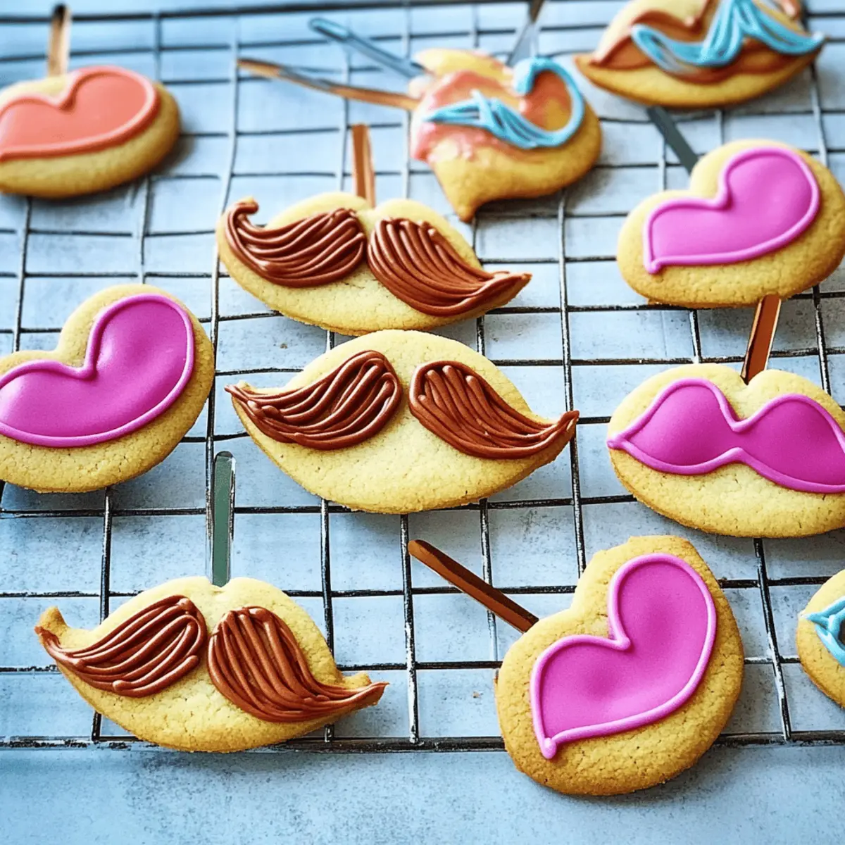 As I rummaged through my kitchen, a stroke of inspiration whisked me away to a playful world of shapes and colors. Enter the Funny Face Cookies, your new go-to iced treats that delight both the young and young-at-heart! Perfect for any occasion, from whimsical wedding favors to Halloween fun, these cookies aren’t just a feast for the eyes—they bring cheerful smiles to every gathering. Imagine colorful moustaches and retro lips, each cookie a canvas for creativity. Not only are they a joy to decorate, but their buttery texture and sweet icing make them irresistible as well. Whether you’re hosting a party or looking to entertain kids, these cookies offer a delightful diversion from the usual snacks. Ready to get your cookie game on? Let’s make some memories in the kitchen! Why Are Funny Face Cookies So Fun? Whimsical, Eye-Catching Designs: Each cookie features playful shapes like moustaches and lips that are sure to spark joy at any event. Versatile Treat: Perfect for birthdays, weddings, or even festive Halloween gatherings, these cookies adapt to any occasion! Easy to Make: With simple ingredients and straightforward instructions, baking becomes a delightful activity for both adults and kids alike. Creative Decorating: Encourage creativity by letting little ones help with the icing—check out my Luscious Lemon Cookies for more fun decorating ideas! Crowd-Pleasing Treat: Their buttery goodness and delightful flavors make them a hit, ensuring no cookie is left behind! Funny Face Cookies Ingredients For the Cookie Dough • Soft Butter (175g) – Adds richness and flavor; substitute with margarine if dairy-free. • Golden Caster Sugar (100g) – Provides sweetness and a fine texture; can be replaced with regular granulated sugar. • Egg Yolk (1 large) – Binds the dough, contributing to its structure; no substitute when forming dough. • Vanilla Extract (½ tsp) – Adds depth of flavor; use almond extract for variation. • Lemon Zest (from 1 lemon) – Brightens the flavor profile; can substitute with orange zest. • Plain Flour (250g) – Forms the structure of the cookies; for a gluten-free option, use a 1:1 gluten-free flour blend. • Salt (½ tsp) – Enhances flavor; essential for balance. For Decorating • Icing Sugar (200g) – Base for decorating icing; can be substituted with powdered erythritol for a sugar-free option. • Large Egg White (1) – Whips into a meringue for the icing; no substitute for desired consistency. • Pink and Brown Food Colouring Pastes – For vibrant icing colors; gel colors work best for a richer hue. • Pink and Gold Edible Glitter (optional) – For decoration; may omit if not available. For Assembly • Cake Pop Sticks – Used for holding cookies; ensure they’re sturdy and food-safe. These Funny Face Cookies are not just treats; they’re a playful canvas for both baking and creativity, making memories in every bite! Step‑by‑Step Instructions for Funny Face Cookies Step 1: Dough Preparation Begin by softening 175g of butter in a mixing bowl, beating it with 100g of golden caster sugar until the mixture is pale and creamy. Next, add 1 large egg yolk, ½ teaspoon of vanilla extract, and the zest of one lemon, mixing until well combined. Sift 250g of plain flour and ½ teaspoon of salt into the mixture, stirring to form a soft dough. Split the dough into two flat discs, wrap them in cling film, and chill in the refrigerator for 30 minutes until they are firm but not hard. Step 2: Shaping Cookies Preheat your oven to 180°C (160°C fan/gas 4) and line baking sheets with parchment paper. On a floured surface, roll out the chilled dough to about 5mm thick. Use an 8cm round cutter to stamp out circles, then carve out crescent moons for moustaches and oval shapes for lips. For the moustaches, shape half-moons and pinch the ends to create the signature look of these Funny Face Cookies. Step 3: Chilling and Inserting Sticks To ensure the cookies maintain their shape, chill the shaped dough in the refrigerator for another 10 minutes. This step helps the dough firm up. Carefully insert cake pop sticks into each cookie, ensuring that the sticks don’t poke through the dough’s surface but provide a sturdy hold for decoration later. Step 4: Baking Once chilled, place the baking sheets in the preheated oven and bake the cookies for about 12 minutes, or until they are pale golden. Keep an eye on them to prevent overbaking. After baking, let the cookies rest on the tray for 5 minutes before transferring them to a wire rack to cool completely, so they firm up nicely. Step 5: Icing Preparation In a clean bowl, beat 1 large egg white with 200g of icing sugar until the mixture becomes thick and smooth. Divide the icing into four batches, using gel food coloring to create two shades of pink and two of brown for the vibrant decor on your Funny Face Cookies. Place the darker colors into piping bags for easier decorating later. Step 6: Decorating Cookies Begin decorating by piping the outlines for the moustaches and lips on the cookies with the colored icing. Allow these outlines to dry for a few minutes. Then, thin the paler icing with a few drops of water and flood the cookies within the outlines, creating a smooth base. Let this icing dry before adding the detailed designs, piping darker mouth lines, and zig-zag patterns over the moustaches. If you wish, sprinkle on some edible glitter for extra fun and bling, and let it all set beautifully. Funny Face Cookies Variations & Substitutions Feel inspired to explore your creativity while making these delightful cookies—there are so many fun ways to customize them! Dairy-Free: Substitute butter with margarine or coconut oil for a vegan-friendly version that maintains flavor. Add Citrus Zest: Enhance your dough with the zest of an orange or lime for a refreshing twist that brightens each bite. The added zest offers a delightful surprise that may just become your new favorite. Flavored Extracts: Swap