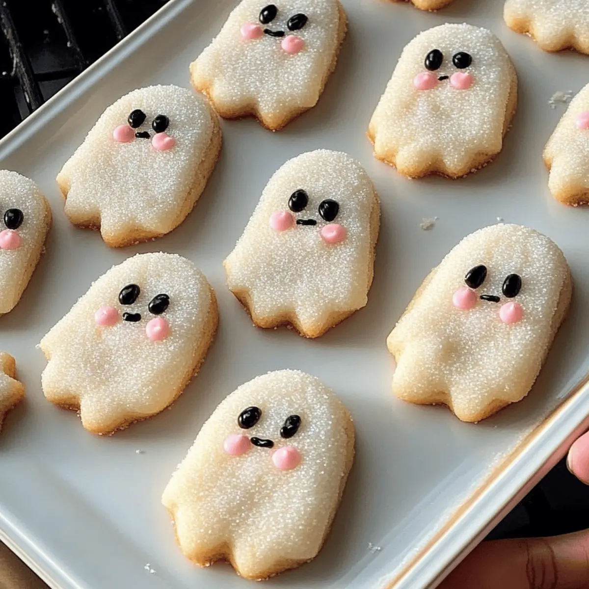 As the October air cools and leaves swirl through the streets, I find myself reminiscing about the sweet, festive chaos of Halloween. One treat that captures this spirit perfectly is these delightful Ghost Cookies. With their soft and chewy texture, topped with a smooth buttercream frosting, they bring both comfort and charm to any gathering. What I love most about these cookies is how effortlessly they impress—ideal for sharing with friends or family during spooky celebrations, and even easier to customize for your own creative touch. Get ready to unleash your inner artist and make a batch of these charming little ghosts that are sure to delight both kids and adults alike! Are you ready to get started? Why are Ghost Cookies a must-try? Spooky Fun: These adorable Ghost Cookies not only taste amazing but also bring a playful touch to your Halloween festivities! Soft Texture: With their soft and chewy bite, they’re perfect for satisfying any sweet tooth craving. Customizable: Get creative with decorations—add silly faces or different colors for any occasion! Easy to Make: Minimal ingredients and simple steps make baking these cookies a breeze, even for novice bakers. Crowd-Pleaser: Whether at a party or a cozy night in, these cookies are sure to impress family and friends, just like my Thumbprint Cookies Melt or Luscious Lemon Cookies. Delicious Pairing: They go wonderfully with a glass of milk or spiced apple cider, offering a comforting treat that everyone will love! Ghost Cookie Ingredients • Perfect for festive baking! For the Cookies Unsalted Butter (3/4 cup, room temperature) – Adds richness and moisture to the cookies; you can substitute with margarine for a dairy-free option. Full Fat Cream Cheese (1/2 cup, room temperature) – Provides a soft texture and slight tang; can use Neufchâtel cheese for a lighter alternative. Granulated Sugar (1 1/2 cups) – Sweetens the cookies, creating a chewy consistency; brown sugar can be used for extra flavor depth. Large Egg (1, room temperature) – Binds the ingredients; for an egg substitute, try 1/4 cup unsweetened applesauce. Vanilla Extract (2 tsp) – Adds sweetness and enhances flavor; almond extract works well for a different taste profile. All-Purpose Flour (3 cups) – Forms the base structure of the cookies; use a gluten-free blend for gluten-free Ghost Cookies. Cornstarch (1 Tbsp) – Helps achieve that soft texture that’s key to the cookies’ appeal. Baking Powder (1/2 tsp) – Provides necessary leavening for the cookies. Fine Salt (1/2 tsp) – Balances sweetness and enhances overall flavor. For the Buttercream Frosting Unsalted Butter (1 cup, room temperature) – The base for a creamy frosting; can be substituted with vegan butter for a dairy-free version. Vanilla Extract (1 Tbsp) – Flavors the frosting; lemon extract can add a lovely citrus twist. Powdered Sugar (3 1/2 cups) – Sweetens and thickens the frosting; adjust based on your sweetness preference. Heavy Whipping Cream (1/4 cup, room temperature) – Lightens the frosting; coconut cream works as a dairy-free alternative. Coarse Sanding Sugar (1 cup) – For decoration, replace with granulated sugar if needed. Black Sprinkles/Mini Chocolate Chips – Ideal for creating eyes and mouth; optional, but enhances the ghostly appearance. Pink Gel Food Coloring – For adorable blush cheeks on your ghosts; optional for decoration. Step‑by‑Step Instructions for Ghost Cookies Step 1: Prepare Dough In a large mixing bowl, beat together 3/4 cup of unsalted butter and 1/2 cup of full-fat cream cheese until smooth and creamy. Gradually add in 1 1/2 cups of granulated sugar, mixing until the mixture is light and fluffy. Incorporate 1 large egg and 2 teaspoons of vanilla extract, blending until fully combined, creating a rich and inviting cookie base. Step 2: Mix Dry Ingredients In a separate bowl, whisk together 3 cups of all-purpose flour, 1 tablespoon of cornstarch, 1/2 teaspoon of baking powder, and 1/2 teaspoon of fine salt. This dry mixture is essential for the perfect texture of your Ghost Cookies. Slowly add the dry ingredients to the wet mixture, stirring gently until just combined, avoiding overmixing to maintain the softness of the dough. Step 3: Chill Dough Divide the dough into two halves, wrapping each portion tightly in plastic wrap. Place the wrapped dough in the refrigerator to chill for at least 2 hours or overnight, ensuring that the dough firms up. This chilling step is crucial for preventing the cookies from spreading during baking, helping you achieve those adorable ghost shapes. Step 4: Preheat Oven Preheat your oven to 350°F (175°C) and line several baking sheets with parchment paper. Preparing your baking sheets will ensure that the Ghost Cookies release easily after baking and that they maintain their shape. This is the perfect time to let the anticipation for your festive treats build! Step 5: Roll and Cut Cookies On a lightly floured surface, roll out one portion of the chilled dough to about 1/3 inch thick. Use a ghost-shaped cookie cutter to cut out as many shapes as possible, spacing them evenly on the prepared baking sheets. The fun shapes will come to life as they bake, so take your time ensuring they’re all cut beautifully. Step 6: Final Chill Before baking, place the cut-out cookies in the fridge for an additional 15 minutes. Chilling the shaped cookies again helps maintain their ghostly figures during baking. This extra step will ensure that your Ghost Cookies turn out perfectly cute and not distorted! Step 7: Bake Cookies Carefully transfer the chilled baking sheets to the preheated oven and bake for 12-14 minutes, or until the edges are set but the centers remain soft. They should be lightly golden but not overly browned. Allow the cookies to cool on the pan for about 15 minutes before transferring them to a wire rack to cool completely. Step 8: Prepare Frosting In a mixing bowl, beat 1 cup of unsalted butter until creamy. 