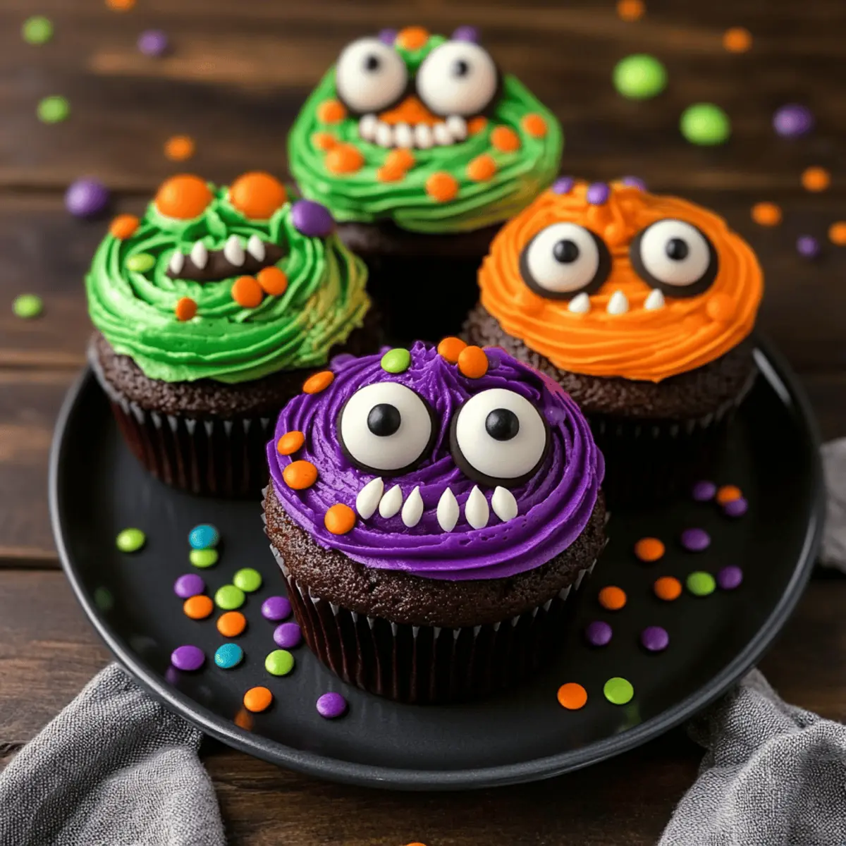Stepping into my kitchen during October means diving headfirst into a world of ghoulish delights! One of my absolute favorite ways to celebrate Halloween is by baking these whimsical Halloween Monster Cupcakes. This recipe is not just a treat—it’s a fun journey into creativity that everyone will enjoy. The fluffy chocolate cakes are topped with vibrant, neon buttercream frosting that beckons the little ones (and the young at heart) to join in the Halloween festivities. Plus, they’re perfect for any celebration, bringing smiles and laughter to kids’ parties and gatherings. Easy to whip up and just as easy to decorate, these spooky cupcakes spark your imagination and let you go wild with colors and candy. Are you ready to get a little messy and create some monstrous masterpieces? Let’s bake! Why Are These Cupcakes So Fun? Endless Creativity: Each cupcake is a blank canvas for your imagination! With colorful frosting and playful candy decorations, let your inner artist run wild. Family-Friendly: Perfect for kids of all ages, these cupcakes are a hit at Halloween parties, school events, or family gatherings. Simple to Make: The straightforward process makes it easy for even novice bakers to whip up a batch of delicious treats. Moist and Delicious: Enjoy the perfect moisture of chocolate cake paired with an indulgent buttercream, ensuring every bite is a flavor sensation. Versatile Designs: Experiment with various frosting colors and candy toppings—transform your cupcakes and keep things exciting for every occasion! Time-Saving: Quick to prepare and decorate, these cupcakes will let you spend more time enjoying the festivities and less time in the kitchen. For more fun ideas, check out Halloween baking fun or learn about making chocolate cupcakes from scratch for an extra special touch! Halloween Monster Cupcake Ingredients • For the Cupcakes Chocolate cake mix – A quick base for cupcakes; you can substitute with a homemade chocolate cupcake recipe for a richer flavor. Large eggs – Provides structure and moisture; no egg substitute is recommended for the best texture. Vegetable oil – Keeps the cupcakes moist; melted coconut oil can be used for a unique flavor. Water – Hydrates the batter; replace with milk for added richness. • For the Buttercream Frosting Unsalted butter – Essential for creamy frosting; vegan butter can be used for a dairy-free version. Powdered sugar – Provides sweetness and structure; no direct substitutions are recommended for best results. Milk – Adjusts frosting consistency; consider using plant-based milk if desired. Vanilla extract – Enhances the flavor; opt for pure extract for authenticity. Gel food coloring – Tints frosting in vibrant Halloween colors; liquid dye can be substituted, but gel yields brighter results. • For Decorating Candy eyeballs & Halloween sprinkles – Fun decorative elements that add a whimsical touch to the cupcakes. Mini marshmallows – Used for “teeth”; white chocolate chips can be an alternative. Black licorice strings – Represents “hair” on the monsters; swap with chocolate string candy if preferred. M&Ms or chocolate chips – Optional extras for decoration or flavor enhancement. Step‑by‑Step Instructions for Halloween Monster Cupcakes Step 1: Bake Cupcakes Preheat your oven to 350°F (175°C) and line a muffin tin with festive cupcake liners. In a large mixing bowl, combine the chocolate cake mix, large eggs, vegetable oil, and water, stirring until smooth. Fill each liner two-thirds full with batter and bake for 18–20 minutes, or until a toothpick inserted into the center comes out clean. Allow the cupcakes to cool completely before decorating. Step 2: Make Buttercream Frosting In a mixing bowl, beat the unsalted butter with a hand mixer until it’s creamy and light in color. Gradually add in the powdered sugar while continuing to beat, then mix in milk and vanilla extract until the buttercream achieves a smooth and spreadable consistency. This delightful frosting will serve as the base for your Halloween Monster Cupcakes’ colorful decorations. Step 3: Color Frosting Divide the buttercream frosting into several bowls, preparing to create a vibrant assortment of colors. Using gel food coloring, tint each portion according to your desired Halloween theme—think bold purples, greens, oranges, and blacks. Mix thoroughly until you achieve a rich hue, and feel free to adjust the intensity by adding more color until you’re satisfied. Step 4: Frost & Decorate With the cupcakes cooled, it’s time to bring the Halloween Monster Cupcakes to life! Spread or pipe the colored frosting generously onto each cupcake. Let your creativity shine as you add candy eyeballs, mini marshmallow “teeth,” and other fun decorations to make each cupcake uniquely monstrous. Use this opportunity to inspire playful designs that will delight everyone. Step 5: Personalize Your Cupcakes Encourage creativity by letting everyone design their own Halloween Monster Cupcakes! Provide a variety of toppings like chocolate chips, licorice strings for “hair,” or Halloween sprinkles. This step allows for unique interpretations and fun, giving each cupcake its distinctive look and personality, perfect for sharing at parties or family gatherings. Step 6: Store or Serve After decorating your Halloween Monster Cupcakes, they are ready to be enjoyed! If you’re not serving them right away, store the cupcakes in an airtight container at room temperature for up to three days. For longer storage, refrigerate them for up to a week or freeze them for up to a month—thaw them before adding fresh decorations or serving! Make Ahead Options These Halloween Monster Cupcakes are perfect for busy home cooks looking to save time during the festive season! You can prepare the chocolate cupcakes up to 3 days in advance; just bake and allow them to cool completely, then store them in an airtight container at room temperature to maint