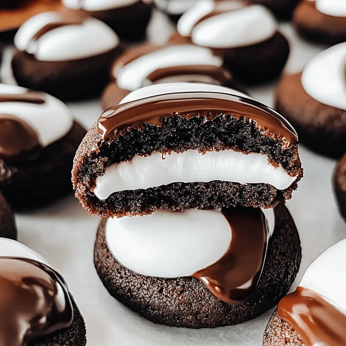 These Hostess Cupcake Cookies are a delightful twist on a classic treat, combining a fudgy base with marshmallow meringue and rich ganache.