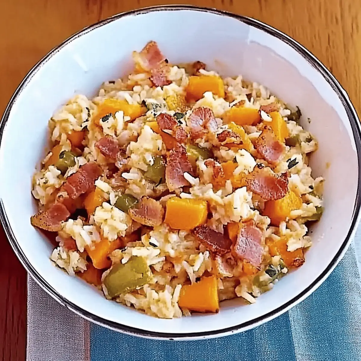 There’s something magical about cozying up with a warm bowl of goodness, especially as the leaves turn and the air chills. That’s where my Hubble Bubble Pumpkin Pot comes in—a delightful fusion of earthy pumpkin, crispy bacon, and fluffy rice that not only satisfies but also brings the family together in the kitchen. This quick and easy meal is a lifesaver for busy weeknights, perfect for cooking with the kids or enjoying a peaceful dinner after a long day. Plus, it’s entirely microwavable, which means less time fussing and more time relishing that comforting autumnal flavor. Do you think you’ll whip up this delightful dish tonight? Why is the Hubble Bubble Pumpkin Pot special? Comforting, this dish wraps you in warmth with every bite, making it an ideal choice for fall evenings. Quick and easy, it can be ready in under 30 minutes, perfect for busy families. Kid-friendly, this recipe invites little chefs into the kitchen, turning cooking into a fun family activity. Versatile, feel free to substitute ingredients for dietary preferences—consider trying Avocado Mojo Chicken for a twist! Hearty and delicious, with the smoky flavor of bacon mingling with sweet pumpkin, it’s a dish that your loved ones will ask for again and again. Hubble Bubble Pumpkin Pot Ingredients For the Base Leeks – Provides a mild onion flavor and a tender texture; substitute with green onions or shallots if unavailable. Smoked Bacon – Adds a rich, savory depth to the dish; can swap with turkey bacon or omit for a vegetarian version. Pumpkin (or Butternut Squash) – Offers sweetness and nutritional value; use canned pumpkin for convenience if fresh is not available. Butter – Contributes richness and helps in cooking the vegetables; can replace with olive oil for a healthier option. Chicken Stock Cube – Delivers flavor to the dish; use vegetable stock for a vegetarian version. Long Grain Rice – Acts as the hearty base of the dish; substitute with quinoa or brown rice, adjusting cooking time appropriately. Step‑by‑Step Instructions for Hubble Bubble Pumpkin Pot Step 1: Prepare the Ingredients Begin by slicing the leeks and chopping the smoked bacon into small pieces. In a large microwaveable bowl, combine the prepared leeks, bacon, and pumpkin chunks. This mixture sets the foundation of your Hubble Bubble Pumpkin Pot, so ensure everything is evenly distributed for the best flavor. Step 2: Cook the Base Ingredients Dot the mixture in the bowl with butter, covering it well to promote rich flavors. Next, cover the bowl tightly with cling film or a microwave-safe plate, and microwave on High for 5 minutes. Look for the bacon to soften and the pumpkin to become tender, releasing an inviting aroma. Step 3: Prepare the Chicken Stock While your base ingredients are cooking, prepare 700ml of chicken stock by dissolving the stock cube in hot water. This flavorful liquid will enhance the depth of your Hubble Bubble Pumpkin Pot. Stir until fully dissolved, and set it aside, ready to be added in the next step. Step 4: Combine Ingredients Carefully remove the bowl from the microwave, being cautious of hot steam. Add the long grain rice to the partially cooked mixture and season generously with salt and pepper. Give everything a good stir to combine all the flavors and ensure the rice is well-coated in the delicious base. Step 5: Final Cooking Phase Cover the bowl again with either cling film or a plate and return it to the microwave on High. Cook for an additional 10 minutes, then carefully stir. Continue microwaving for another 5-10 minutes, or until the rice is fully cooked and the mixture has thickened. Look for tender rice that has absorbed the pumpkin and bacon flavors. Step 6: Rest and Serve Once cooked, let the Hubble Bubble Pumpkin Pot stand for 5 minutes, covered. This resting period allows the flavors to meld together beautifully. When ready to serve, stir one last time to combine all the delicious ingredients, and scoop generously into bowls to enjoy! What to Serve with Hubble Bubble Pumpkin Pot? There’s nothing quite like crafting a cozy family meal that brings warmth and flavor to your table as the seasons turn. Crusty Bread: Perfect for dipping into the creamy pumpkin mixture, crusty bread adds a satisfying crunch that complements the soft texture of the dish. Green Salad: A fresh arugula salad with a light vinaigrette brightens the palate and adds a wonderful contrast to the rich, savory flavors of the pumpkin pot. The peppery greens balance beautifully with the dish’s sweetness. Sweet Corn on the Cob: Juicy sweet corn provides a delightful burst of flavor and a fun, seasonal side that enhances the dish’s autumnal feel. It’s a family favorite that pairs well with any comforting meal. Roasted Brussels Sprouts: Crispy, caramelized Brussels sprouts add a crunchy element and that earthy flavor we crave in fall dishes. Tossed with olive oil, salt, and pepper, they elevate your dinner while still being simple to prepare. Savory Pumpkin Soup: Consider a creamy pumpkin soup with gentle spices for a comforting starter. It mirrors the pumpkin in your main dish and creates a harmonious meal. Apple Cider: A warm glass of spiced apple cider serves as a lovely beverage, complementing the savory notes of the Hubble Bubble Pumpkin Pot and adding a hint of cozy sweetness. Chocolate Chip Cookies: End the meal on a sweet note with classic chewy chocolate chip cookies. Their rich chocolatey goodness is the perfect treat following a delightful dinner! Hubble Bubble Pumpkin Pot Variations Feel free to explore these creative variations and make this dish your own with delightful twists! Vegetarian Delight: Swap smoked bacon for sautéed mushrooms to keep it hearty and meat-free. The earthy flavor of mushrooms complements the pumpkin beautifully. Creamy Touch: Stir in a splash of heavy cream or coconut milk before serving for a rich, velvety texture. It brings an indulgent creaminess that’s simply irresis