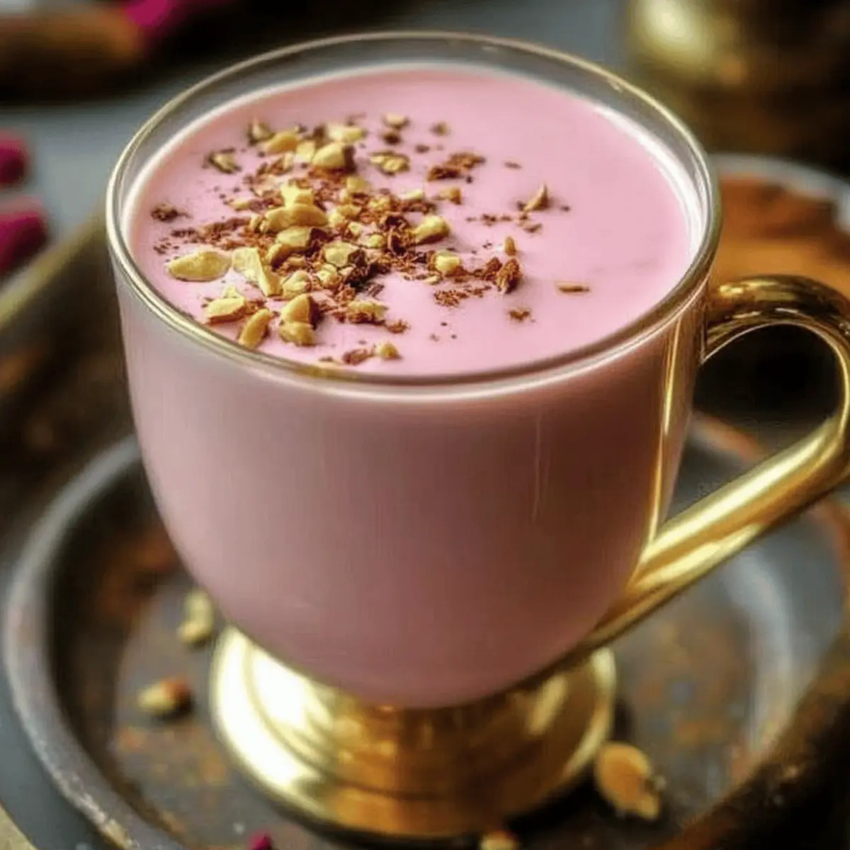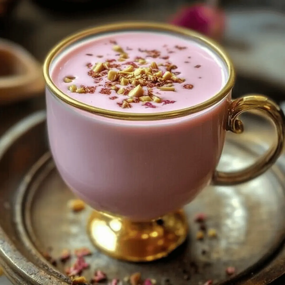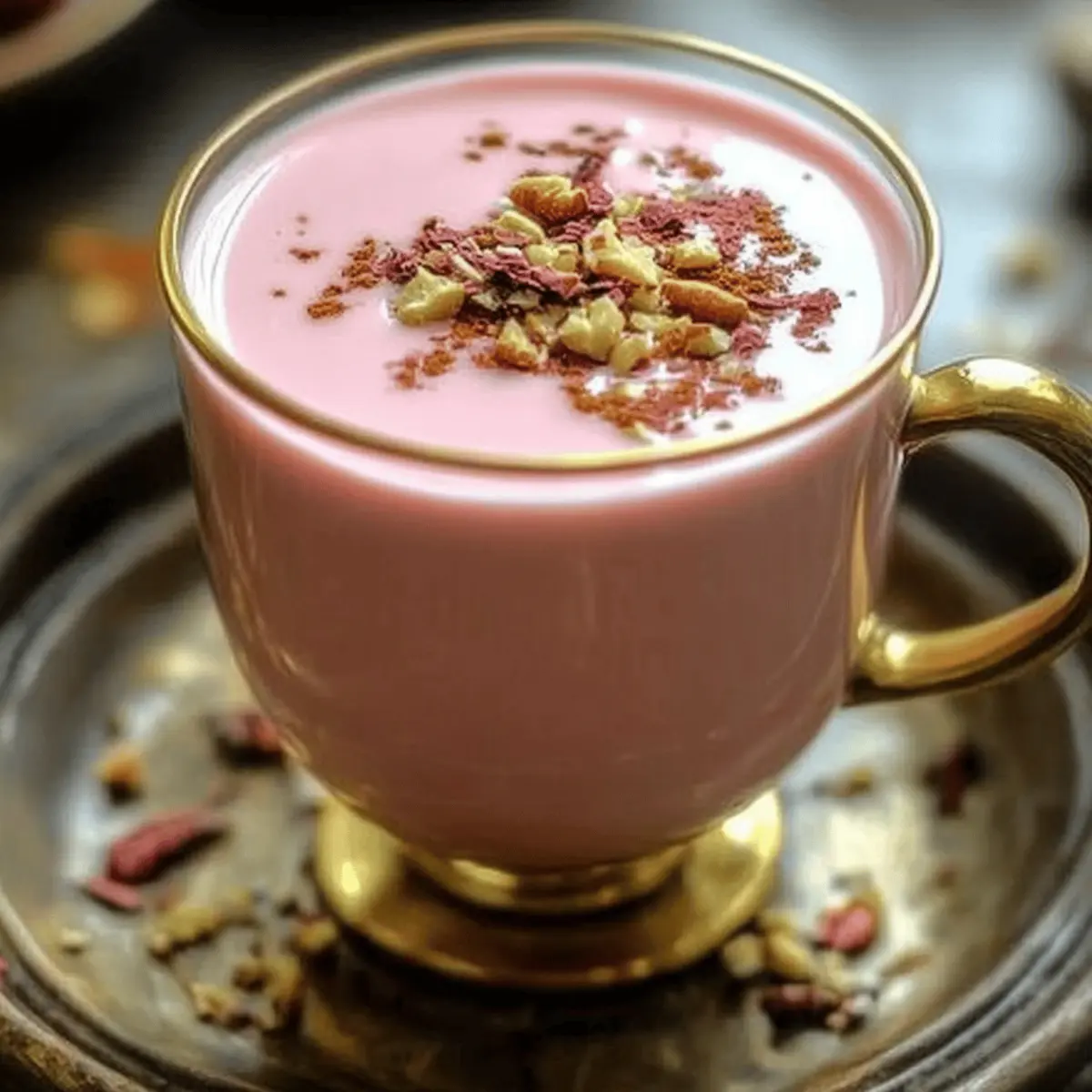 While sipping my morning coffee, I overheard a friend raving about Kashmiri Pink Chai, the mesmerizing traditional drink that turns breakfast into a vibrant experience. This creamy, colorful brew, also known as Noon Chai, is not just stunning to look at but a comforting hug in a cup. A precise blend of spices and the secret ingredient—baking soda—miraculously transforms the tea into that signature shade of pink. You’ll love how simple it is to make this warming beverage, making it a perfect addition to your cozy gatherings or a lazy weekend brunch. With a delightful balance of flavors and that luscious, creamy texture, this recipe captures the essence of cultural heritage and warmth in every sip. Are you ready to step into the enchanting world of Kashmiri Pink Chai? Let’s brew something beautiful together! Why is Kashmiri Pink Chai Special? Comforting the soul, Kashmiri Pink Chai is like a warm hug in a cup. Unique flavor combinations of spices and the enchanting pink hue elevate your tea experience to new heights. Versatile enough to be enjoyed hot or iced, this chai fits any occasion. With simple steps, anyone can master the art of making this delightful beverage. It’s not just a drink; it’s a cultural treasure that brings people together, turning quick coffee breaks into extravagant moments of indulgence. You can even explore ways to make this chai your own with options for different spices and sweeteners, or pair it with snacks like samosas for an authentic touch! Kashmiri Pink Chai Ingredients • Discover the must-have ingredients for this colorful, comforting brew! For the Chai Base Water – Essential for brewing; no substitutions necessary. Kashmiri/Himalayan Green Tea – This is the main flavor component; other green teas can be used but may not achieve the same flavor depth. Baking Soda – Critical for achieving the signature pink color; do not substitute, but adjust the quantity if needed for color. Salt – Enhances flavors; do not omit, but you can adjust for preference. For the Flavor Star Anise – Adds a sweet, aromatic flavor; this ingredient is optional and can be omitted for a more straightforward chai profile. Cardamom Pods – Infuses warmth and a fragrant aroma; substitute with ground cardamom if needed. Cinnamon Stick – Provides comforting warmth; ground cinnamon can be used in smaller amounts. For the Creamy Finish Whole Milk – Creates a rich, creamy texture; non-dairy milk can be used, but the flavor will vary. Sugar or Honey – Sweetens to taste; adjust based on preference, and alternatives like agave syrup can be used. Crushed Nuts (e.g., Almonds) – A delightful garnish for added texture and flavor; this step is optional but highly recommended for presentation. Step‑by‑Step Instructions for Kashmiri Pink Chai Step 1: Boil the Water Begin by bringing 4 cups of water to a rolling boil in a medium saucepan over high heat. Keep an eye on the water until it bubbles vigorously. This crucial step sets the stage for the infusion of flavors in your Kashmiri Pink Chai. Step 2: Add the Green Tea Once the water is boiling, add the Kashmiri green tea and allow it to boil for about 5 minutes. As the tea steeps, you’ll notice the water adopting a deep amber hue, signaling that the flavors are developing nicely, preparing for that enchanting pink color. Step 3: Incorporate Baking Soda Next, carefully stir in ½ teaspoon of baking soda. You’ll witness an immediate transformation as the liquid turns a vibrant red. Continue boiling for an additional 2 minutes, ensuring the baking soda is well-integrated, which is key for achieving the signature color of your chai. Step 4: Add Aromatic Spices Introduce the star anise, crushed cardamom pods, and cinnamon stick into the pot. Allow the mixture to boil for 1 minute, filling your kitchen with a warm and inviting scent. This step enhances the flavor profile of your Kashmiri Pink Chai, creating a fragrant, spicy foundation. Step 5: Simmer the Mixture Lower the heat and let the tea simmer gently for 20-30 minutes. Watch as the liquid gradually reduces to half its original volume, intensifying both the flavor and color. This slow simmer is a crucial phase that deepens the aromatic experience of the chai. Step 6: Season the Chai After simmering, add ¼ teaspoon of salt to the pot and stir well to blend. This step enhances the overall taste of your Kashmiri Pink Chai, balancing the sweetness and the creaminess that will come next. Step 7: Add the Milk Pour in 2 cups of whole milk while stirring continuously. Increase the heat slightly to bring the mixture to a gentle boil. Keep stirring to prevent the chai from scorching at the bottom of the pot, ensuring a smooth, creamy consistency. Step 8: Achieve the Signature Color Once the chai begins to turn a lovely pink shade, remove it from the heat. The transformation marks that your Kashmiri Pink Chai is nearly ready to be served, bringing its unique hue to life for that perfect presentation. Step 9: Strain and Serve Strain the chai into cups using a fine mesh sieve to eliminate the spices and tea leaves. This creates a beautifully smooth texture that enhances your drinking experience, letting the vibrant color shine through for your guests. Step 10: Sweeten and Garnish Finally, sweeten your Kashmiri Pink Chai to taste with sugar or honey, and finish with a sprinkle of crushed nuts for added flavor and texture. Serve hot, and savor each delicious sip that embodies warmth and tradition. Make Ahead Options These delicious cups of Kashmiri Pink Chai are perfect for busy weeknights when you want to enjoy a flavorful beverage without the fuss! You can prepare the chai base—consisting of the water, green tea, baking soda, and spices—up to 24 hours in advance; simply follow the boiling and simmering steps, let it cool, and refrigerate. When you’re ready to serve, heat it gently on the stove before adding the milk to achieve that creamy finish, ensuring you stir contin