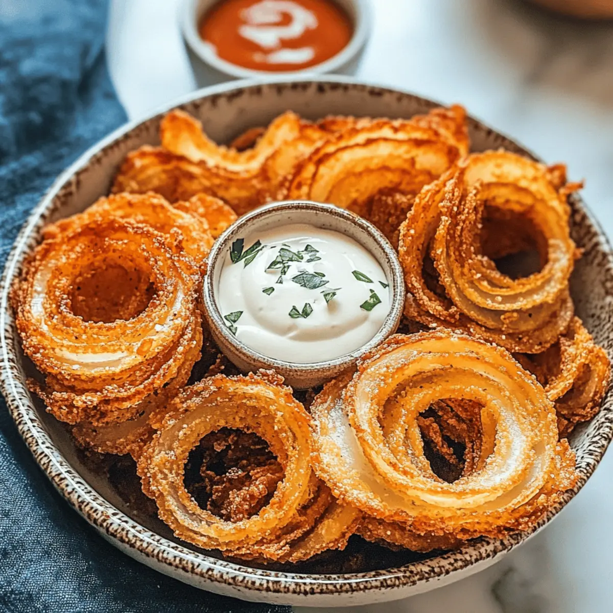 The moment those golden-brown Crispy Onion Ring Chips hit the table, it’s like magic! Friends laugh, and the crunch of each bite fills the room, whisking me back to carefree summer gatherings. These addictive snacks are not only quick to whip up in just 25 minutes but also offer flexibility—you can fry them for that classic crisp or bake them for a healthier twist. With their delightful texture and savory flavor, they pair perfectly with your favorite dipping sauces or shine just as they are. Are you ready to elevate your snacking game and impress your guests with this irresistible treat? Let’s dive into the recipe! Why Are Onion Ring Chips So Irresistible? Crispy Texture: The light, airy crunch of these onion ring chips provides the ultimate satisfaction in every bite. Quick Preparation: Ready in just 25 minutes, they fit perfectly into your busy schedule, making them an ideal last-minute snack or party appetizer. Flavor Versatility: Customize the seasoning to suit your taste—try adding a kick of cayenne or experiment with smoked paprika for a delightful twist! Healthy Option: Bake them for a guilt-free alternative without sacrificing that crave-worthy crunch. Dipping Delight: Serve them with your favorite dipping sauces, or enjoy them solo; either way, they’re sure to steal the show! If you’re looking for other snack ideas, check out Tomato Bruschetta Elevates or add a sweet twist with Luscious Lemon Cookies. With onion ring chips in the spotlight, your snack game will reach new heights! Onion Ring Chips Ingredients • Perfect for a crispy snack! For the Batter Onions – The heart of these chips; use sweet onions like Vidalia for a milder taste. All-Purpose Flour – Creates a crunchy coating; substitute with gluten-free flour if needed. Garlic Powder – Adds depth and flavor; you can swap it for onion powder or fresh minced garlic. Paprika – Brings a pop of color and flavor; try smoked paprika for a unique twist. Salt – Essential for seasoning; sea salt or kosher salt works great as alternatives. Black Pepper – Adds a touch of spice; white pepper offers a milder flavor if preferred. Buttermilk – Helps the batter adhere to the onions; regular milk with vinegar or lemon juice can be used instead. Panko Breadcrumbs – For that signature crispy texture; regular breadcrumbs can work, but they won’t be as crunchy. For Frying Vegetable Oil – Essential for frying to achieve that golden crispiness; canola or peanut oil are good substitutes. Enjoy making your Onion Ring Chips! Step‑by‑Step Instructions for Onion Ring Chips Step 1: Heat the Oil In a deep fryer or large pot, heat vegetable oil to 350°F (175°C). Use enough oil to fully submerge the onion rings for even cooking. This temperature ensures the onion ring chips become beautifully crispy without absorbing too much oil. Keep an eye on the thermometer for optimal frying. Step 2: Prepare the Flour Mixture In a medium bowl, mix together all-purpose flour, garlic powder, paprika, salt, and black pepper until well combined. This mixture will form a flavorful coating for your onion ring chips. Ensure there are no lumps for a smooth batter, which will help it stick better to the onions. Step 3: Set Up the Breading Station Create an efficient assembly line by placing bowls of buttermilk, the flour mixture, and panko breadcrumbs in order. This setup makes it easy to coat the onion rings, ensuring a consistent and thorough breading process. It also helps keep your workspace organized as you prepare the onion ring chips. Step 4: Coat the Onion Rings Dip each onion ring into the buttermilk, allowing excess to drip off before coating it in the flour mixture. Afterward, return the ring to the buttermilk, letting it soak briefly, then transfer it to the panko breadcrumbs, ensuring an even, crispy layer. Repeat this process until all onions are coated. Step 5: Fry the Onion Rings Carefully add the coated onion rings to the hot oil in batches, making sure not to overcrowd the pot. Fry them for 2–3 minutes, turning occasionally until they are golden brown and crispy. Watching for that beautiful color is key to perfecting your onion ring chips. Step 6: Drain and Serve Once golden and crispy, remove the onion ring chips from the oil and place them on a paper towel-lined plate to drain excess oil. Serve these delightful snacks warm and enjoy the crunch along with your favorite dipping sauces or on their own for the ultimate flavor experience. Expert Tips for Onion Ring Chips Oil Temperature: Use a thermometer to monitor the oil temperature; maintaining 350°F ensures your onion ring chips cook evenly and remain crispy. Batch Frying: Avoid overcrowding the pot when frying; it leads to soggy chips. Fry onion rings in small batches for the best results. Baking Option: For a healthier alternative, bake your onion ring chips at 425°F (220°C) for 20-25 minutes. Flip halfway through for even crispiness. Crunchy Coating: For extra crunch, double-dip your onion rings—coat in flour, dip in buttermilk again, and coat with panko before frying. Flavor Additions: Experiment with spices! Add cayenne pepper to the flour mixture for heat or use fresh herbs for a unique flavor twist in your onion ring chips. Onion Ring Chips Variations & Substitutions Feel free to personalize this recipe and make it your own with these fun twists and alternatives! Dairy-Free: Substitute buttermilk with almond milk mixed with a tablespoon of vinegar for a lactose-free option. This ensures your onion ring chips still have that delicious coating while staying dairy-free! Spicy Kick: Add cayenne pepper to your flour mixture to turn up the heat in your onion ring chips. You’ll find that the balance of sweet onion and spicy flavor creates a snack experience that’s truly unforgettable. Baked Option: Bake your onion rings at 425°F (220°C) for a healthier version that’s still crispy and satisfying. Simply follow the same coating process, placing them on 