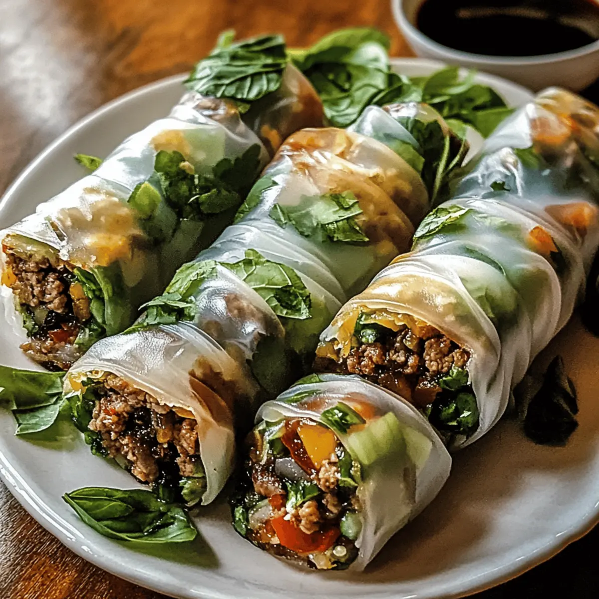As I sank my teeth into my first Thai Basil Beef Roll, I was instantly transported to the bustling streets of Thailand, where the air is rich with spice and freshness. This recipe for Spicy Thai Basil Beef Rolls captures that vibrant essence, blending savory, tender beef with fragrant basil into a memorable bite. Not only are these rolls a fantastic appetizer for gatherings, but they also make for a quick and satisfying light meal on busy nights. Plus, they’re incredibly versatile—you can easily adjust the ingredients to suit your tastes or dietary needs. Ready to bring a taste of Thailand right to your kitchen? Let’s roll up some flavor! Why are Thai Basil Beef Rolls a must-try? Freshness in Every Bite: These Thai Basil Beef Rolls are a flavor explosion that brings freshness to your table. Simplicity to Impress: Crafted in just a few easy steps, this recipe is perfect for cooks of any skill level. Versatile Ingredients: Adapt the filling to your dietary needs or preferences; ground chicken or tofu works beautifully! Crowd-Pleasing Delight: Your guests will rave about these savory rolls, whether served at a party or cozy dinner. Time-Saving Option: Prep the beef mixture ahead of time for a quick assembly when you’re ready to eat. These refreshing rolls are sure to become a family favorite—enjoy them as a light dinner or paired with a delightful salad! For more delicious recipes, check out my Basil Chicken Lettuce or Cheesy Beef Chimichangas. Thai Basil Beef Rolls Ingredients For the Beef Filling • Beef (ground or thinly sliced) – This savory protein forms the heart of the rolls; feel free to swap with any ground meat or even tofu for a vegetarian delight. • Garlic – Freshly minced garlic lends aromatic depth; powdered garlic is a quick substitute in a pinch. • Soy Sauce – Adds saltiness and umami richness; consider using low-sodium soy sauce for a lighter variation. • Chili Flakes or Fresh Chilies – Provide the desired heat; adjust to taste or omit for a milder flavor. For the Roll Assembly • Thai Basil – This fragrant herb brings freshness and vibrancy; regular basil or mint can be used if Thai basil isn’t available. • Rice Paper Wraps – These chewy wrappers encase your filling; for a gluten-free alternative, lettuce leaves work wonderfully. • Vegetables (like carrots, cucumbers) – Add crunch and freshness; any salad vegetables you love are perfect substitutions. With these Thai Basil Beef Rolls ingredients, you’ll craft an irresistible dish that’s bursting with flavor. Enjoy the fun of rolling these delightful bites that are sure to impress your family and friends! Step‑by‑Step Instructions for Thai Basil Beef Rolls Step 1: Prepare the Beef Mixture In a large skillet over medium heat, add a splash of oil and sauté 2 minced garlic cloves until fragrant, about 1 minute. Next, add your ground beef (or sliced beef) to the skillet, stirring occasionally for about 5–7 minutes, or until it turns a deep brown. Pour in 2 tablespoons of soy sauce and a pinch of chili flakes, mixing well until everything is combined and the mixture is heated through. Step 2: Prepare the Rice Paper Fill a shallow dish with warm water and gently dip a rice paper wrap into it for about 20-30 seconds, just until it starts to soften. Carefully lift it out and lay it flat on a clean kitchen towel or cutting board. Repeat this process until you have several rice papers softened, laying them apart to prevent sticking. Step 3: Assemble the Rolls Place a basil leaf at the center of a softened rice paper followed by a generous spoonful of the beef mixture. If desired, add thinly sliced vegetables like cucumbers or carrots for added crunch. Carefully fold the sides over the filling, then roll from the bottom up towards the top, ensuring the filling is snugly encased within the rice paper. Step 4: Serve Arrange your beautifully wrapped Thai Basil Beef Rolls on a serving platter. These fresh, flavor-packed rolls can be enjoyed as is, but they shine even brighter when paired with a dipping sauce such as sweet chili sauce or hoisin sauce. What to Serve with Thai Basil Beef Rolls There’s nothing quite like a flavorful roll to inspire a well-rounded meal filled with vibrancy and enjoyment. Crispy Spring Rolls: These crunchy delights add an extra layer of texture, perfectly complementing the tender beef and fresh basil in your rolls. Tropical Fruit Salad: A medley of sweet, juicy fruits can balance the savory flavors, offering a refreshing contrast with every bite. Thai Peanut Sauce: This creamy dipping sauce harmonizes beautifully with the spices in the beef rolls, enhancing the overall experience with a rich flavor. Cucumber Salad: Light and crunchy, this salad with a zesty dressing brings a nice freshness to the table, mirroring the vibrant herbs in the rolls. Mango Sticky Rice: For a sweet ending, this classic Thai dessert adds a delightful touch of sweetness, rounding out your meal on a high note. Lemongrass Iced Tea: A refreshing drink with herbal notes that cleanse the palate, adding a cooling element to your spicy dish. Spicy Thai Noodle Salad: The bold flavors in this salad will pair nicely, enhancing the experience with every mouthful. Coconut Shrimp: These crispy bites bring a touch of the tropics, making them a fantastic companion to the savory beef rolls. Garlic Fried Rice: An aromatic side that ties the meal together, adding a comforting and satisfying element to your spread. Make Ahead Options These delicious Thai Basil Beef Rolls are perfect for meal prep, allowing you to enjoy an impressive dish even on your busiest nights! You can prepare the beef mixture up to 24 hours in advance; simply sauté the garlic, beef, soy sauce, and chili flakes, then let it cool before refrigerating. For the fresh rolls, soak the rice paper wraps just before serving to maintain their texture. You can also chop any vegetables ahead of time and store them in an airtight container for 